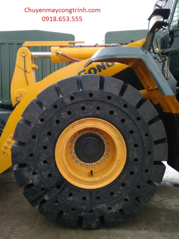 Máy được trang bị lốp đặc cao su đặc biệt giúp máy làm việc trong mọi địa hình phức tạp mà không phải lo lắng hỏng lốp